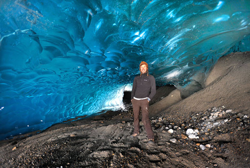 6. Эрик стоит в пещере в Национальном парке Лос-Гласьярес. (ERIC GUTH / CATERS NEWS)