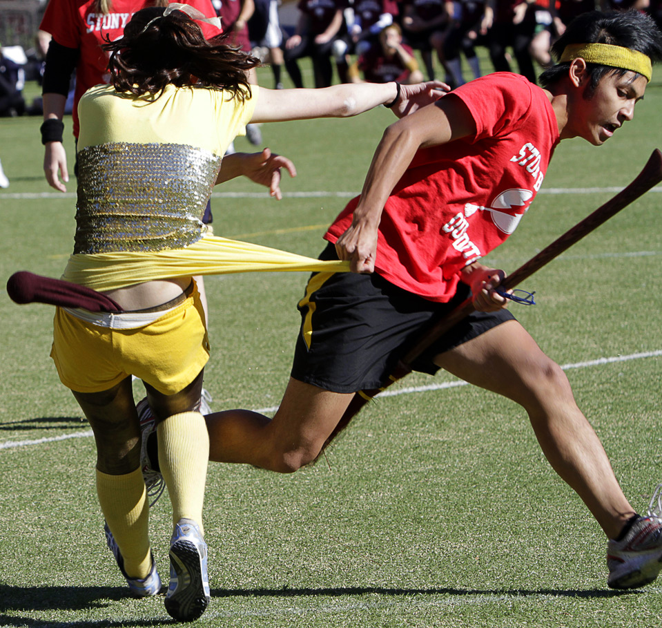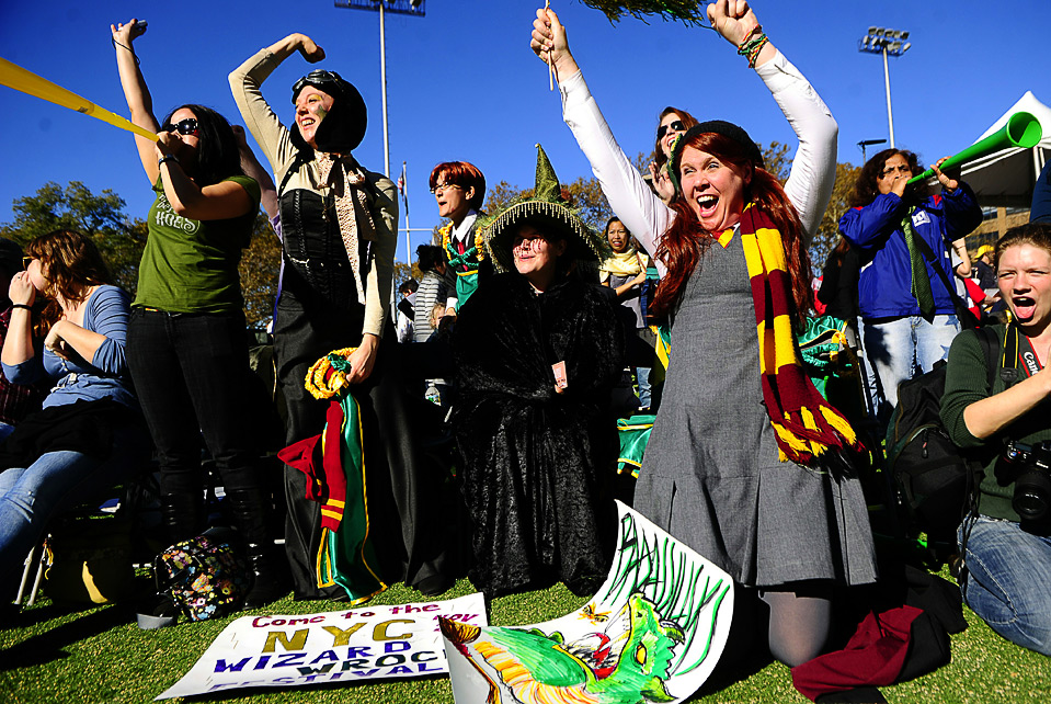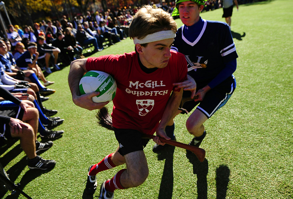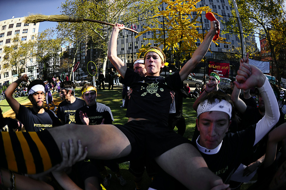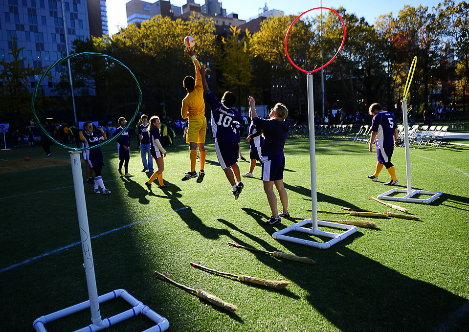Как так получилось, что вымышленная, придуманная с нуля игра стала вполне реальным видом спорта? В квиддич играют в 400 колледжах, и недавно провели уже четвертый кубок мира по этому сказочному виду спорта. Квиддич, представляющий собой интересное сочетание множества элементов регби, хоккея на траве и бега с препятствиями, придумала английская писательница Джоан Роулинг, подарившая детям и взрослым волшебный мир Гарри Поттера. В реальном мире впервые в квиддич начали играть студенты колледжа Мидлбери. Единственное, что их отличало от героев книги, это то, что они не летали на метлах. Ниже приводится выборка фотографий с 4-го кубка мира по квиддичу, который проходил в нью-йоркском парке в Де-Витт Клинтон 13 и 14 ноября.