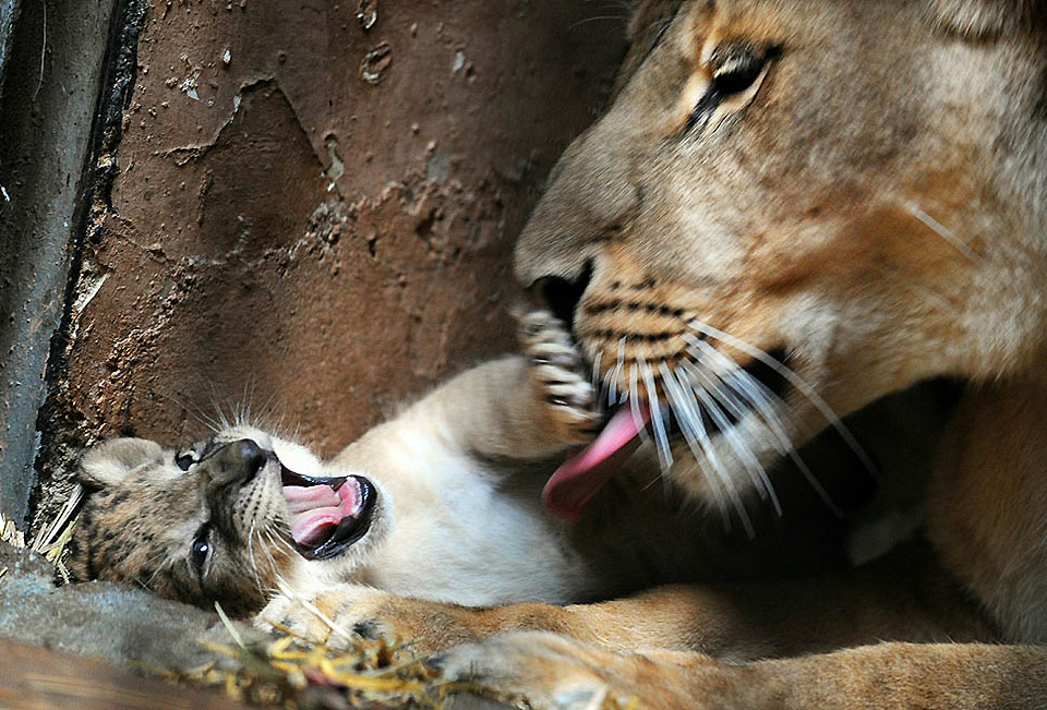 8. Львенок играет со своей матерью, львицей Стефани, в зоопарке болгарской столицы Софии. Месяц назад у Стефани родились двойняшки, что необычно для львов, живущих в неволе. (NIKOLAY DOYCHINOV / AFP / Getty Images)